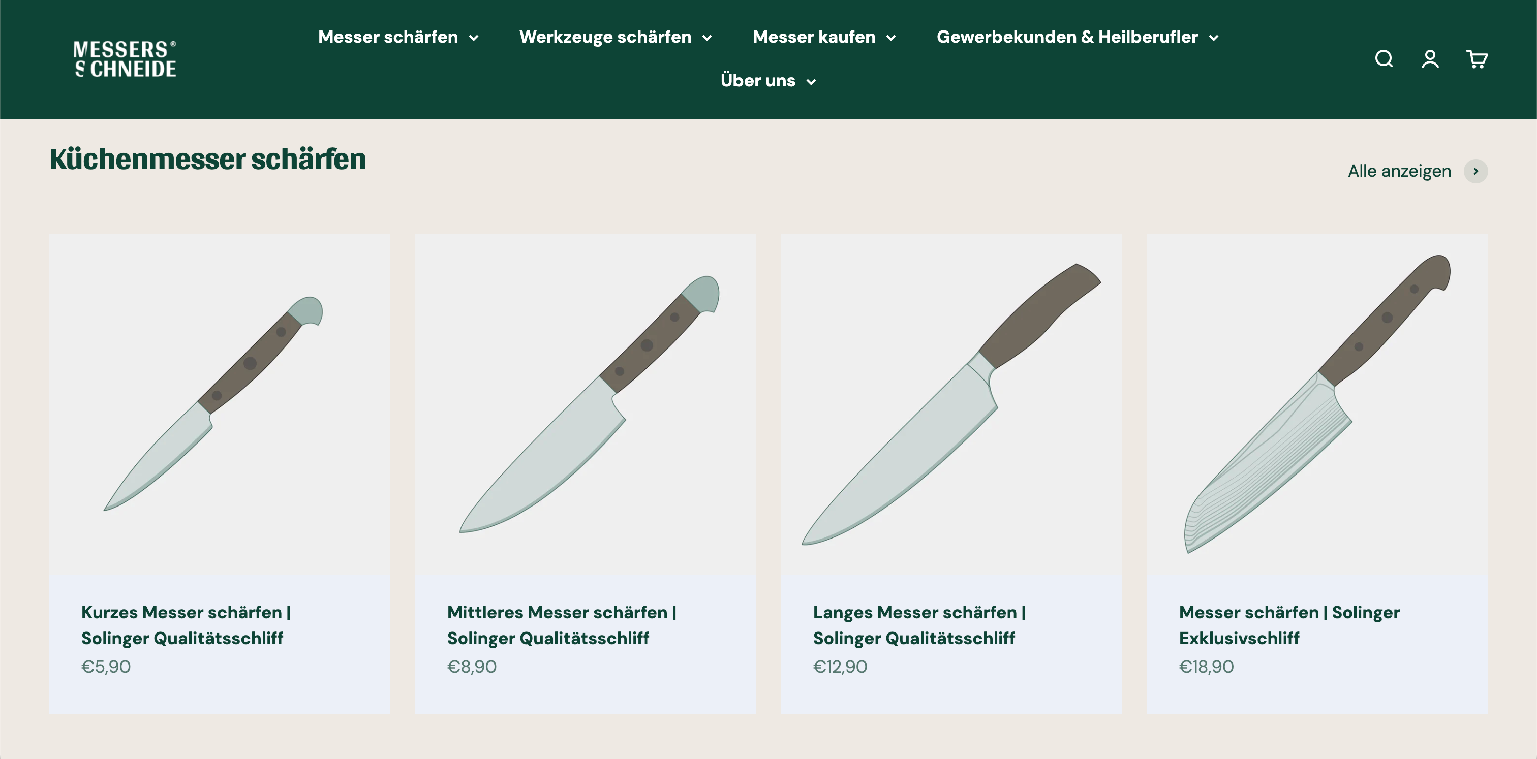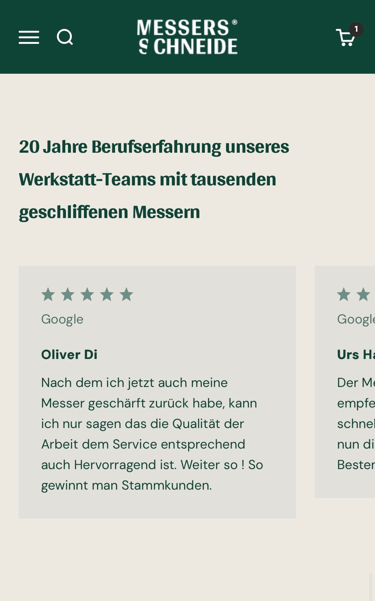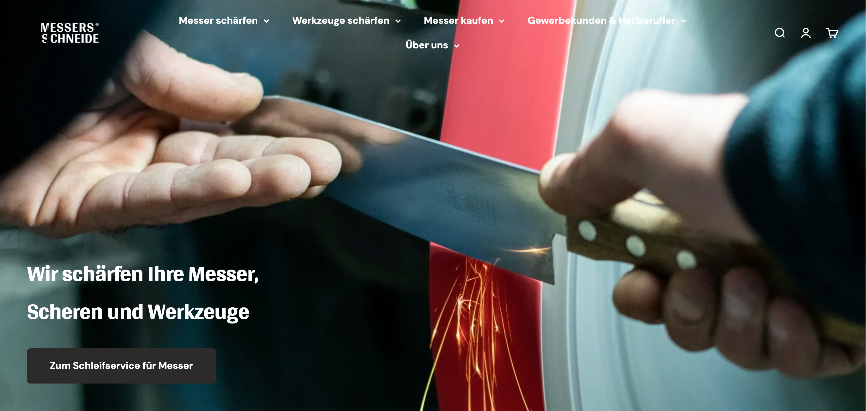 MESSERS SCHNEIDE GmbH hat sich in wenigen Jahren zu einer der größten und modernsten Schleifereien für Messer, Scheren und medizinische Instrumente entwickelt. Wir nehmen stumpfe Klingen direkt in unserer Schleiferei in Solingen entgegen und beraten unsere Kunden auch kompetent in unserem Büro in Köln. Unsere Partnergeschäfte bieten darüber hinaus weitere verlässliche Abgabemöglichkeiten für Ihre stumpfen Klingen. Unsere Mission ist es, Qualität, Präzision und Zuverlässigkeit zu vereinen – damit Ihre Messer, Scheren und Instrumente wieder wie neu funktionieren.